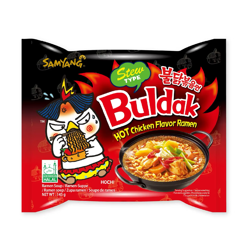 Samyang Buldak Stew Hot Chicken Ramen 145g donosi vatreni spoj bogate juhe i žvakastih, debelih rezanaca koji savršeno upijaju intenzivne korejske arome. Inspiriran uličnom hranom Južne Koreje, ovaj ramen je idealan za sve koji traže više od običnog instant jela – ovo je autentičan obrok s karakterom.