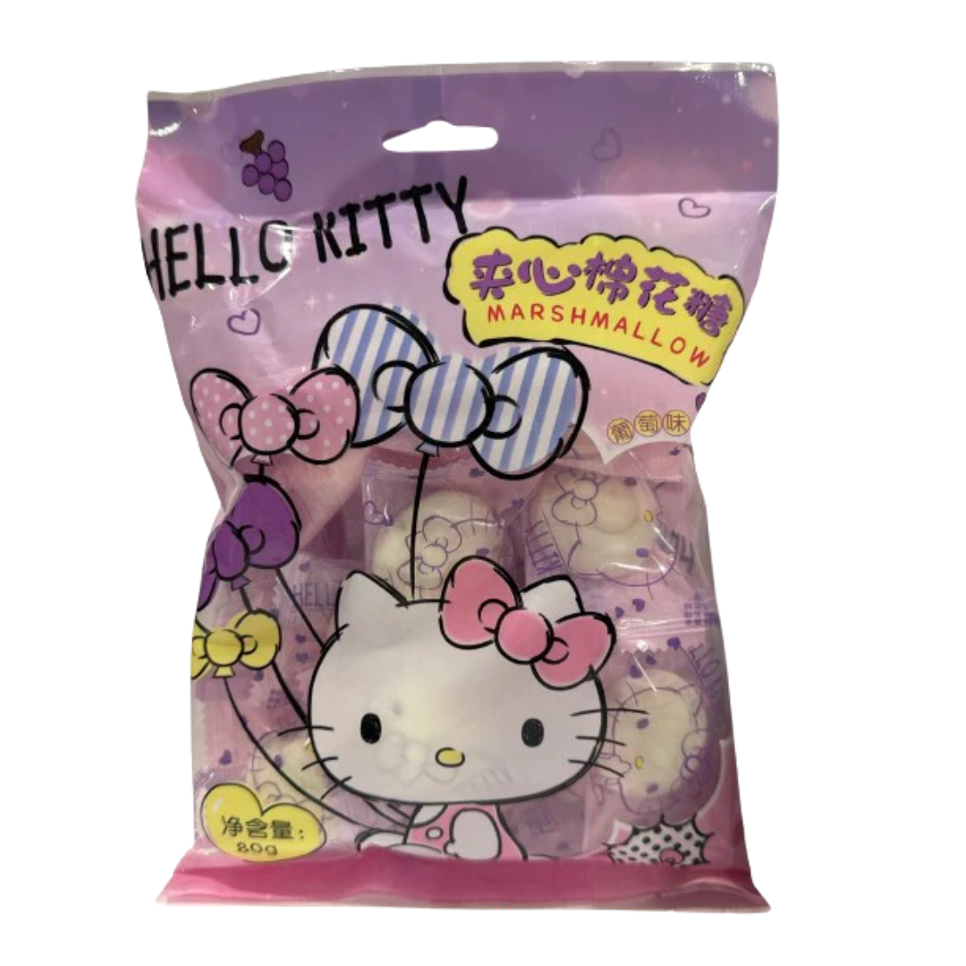 Razveselite svoje nepce s egzotičnim Hello Kitty marshmallowima s okusom grožđa, savršenim slatkišem za obožavatelje Hello Kitty i ljubitelje užina. Ovi marshmallowi nisu samo užina; oni su pravo iskustvo, prepuni sočnog okusa grožđa koji će vas odvesti u svijet slatkoće i zabave.